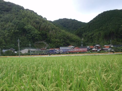 8月から、土日祝日、山陰線下関・東萩間で、新しい列車が通るようになりました 観光列車のため、全席指定のようです 田んぼにくるすずめの数が、増えて、今、50羽くらいの集団でやってきます 朝から夕方まで、すずめを追っています 上の田んぼを追えば、…