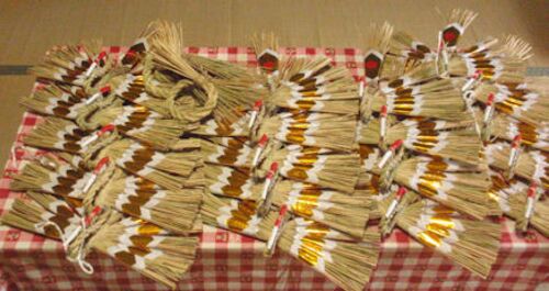 しめ飾りの鶴に金紙をつけ、羽を切りそろえました しめ飾り鶴の形が完成したので、うらじろ探しに出かけました 今まであったところのウラジロが、山の様子が変わったのか、なくなっていきます 別の場所を探しました 山には、赤い実が残っていました