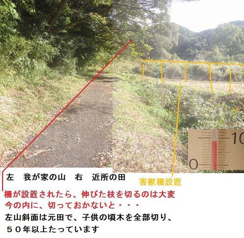 今、中山間で害獣柵を設置中です もうじき、この場所にとりかかるので、柵がつく前に枝を切っておかなければいけません もとは田の畔だったのに、50年もたつと、すっかり山になってしまいました しいのきが大きくなっていたので、切るのに失敗しました 2…