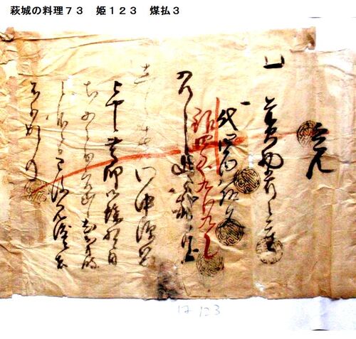 萩城の賄帳を調べています 今日は、「川渡り」のことです 城内で、「川渡り」の日、12月1日に、女中衆へ料理が出されています 1台360文の敷紙肴が4室分出されて、ちょうど全員に渡されたものと思います 「川渡り」については、風土注進案にかかれて…