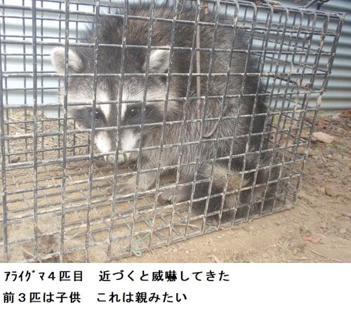 巨峰を食べたアライグマの残りがつかまりました 前3匹は子供、これはその親、天井にすみついていたアライグマだったら、これから静かに暮らせる 終活で毎日忙しい 今度は家の上の山の整備です 山といっても、ミョウガ、スモモ、サカキなどいろいろ植えてい…